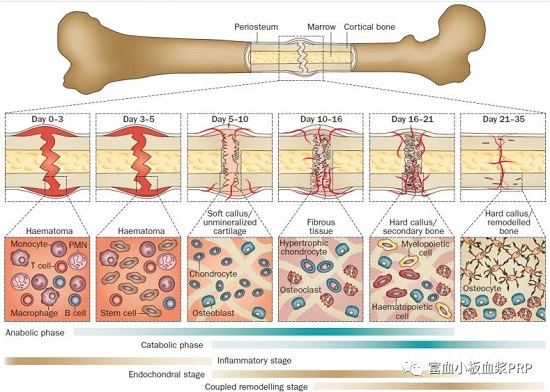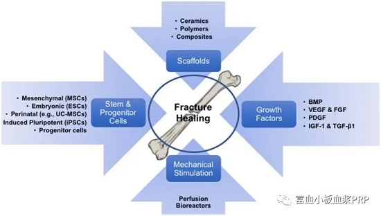 對(duì)用于骨再生的富含血小板的血漿 (PRP) 的研究代表了利用原生骨折血腫中血小板聚集和脫顆粒釋放的級(jí)聯(lián)生長(zhǎng)因子的力量的嘗試。PRP 主要通過(guò)使用市售設(shè)備從外周血中分離和濃縮血小板來(lái)生產(chǎn)。包含各種關(guān)鍵的促有絲分裂和趨化生長(zhǎng)因子,包括血小板衍生生長(zhǎng)因子 (PDGF)、胰島素樣生長(zhǎng)因子 (IGF)、成纖維細(xì)胞生長(zhǎng)因子 (FGF)、轉(zhuǎn)化生長(zhǎng)因子-β (TGF-β) 和 VEGF . 對(duì)于因衰老和退化而接受保守骨科治療的患者,如膝關(guān)節(jié)疼痛和網(wǎng)球肘,經(jīng)常使用 PRP 并顯示出良好的臨床效果。然而,在研究 PRP 對(duì)骨愈合,尤其是人體骨愈合的影響時(shí),臨床結(jié)果相互矛盾,缺乏強(qiáng)有力的支持證據(jù)。