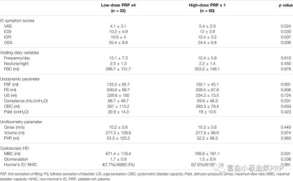 花蓮慈濟(jì)醫(yī)院泌尿外科研究:不同注射次數(shù)、添加劑和濃度的比較研究中,膀胱內(nèi)注射PRP對于IC/BPS是有效的。研究表明,單次高劑量 PRP 注射或四次低劑量 PRP 注射可以改善治療后的 IC 癥狀。雖然單次高劑量 PRP 注射可促進(jìn)癥狀改善長達(dá) 6 個月,但與連續(xù)四次低劑量 PRP 注射治療的患者相比,癥狀改善的幅度明顯較低。使用N/S或PPP或在膀胱20或40個部位注射PRP對單次高劑量PRP治療的結(jié)果沒有影響。但接受高劑量PRP治療的患者與接受低劑量PRP治療的患者相比,GRA較低。在整個研究過程中,沒有發(fā)生與 PRP 注射相關(guān)的不良事件,例如尿路感染或急性尿潴留。